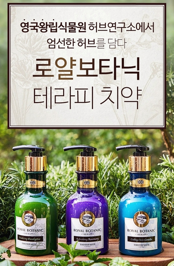 여기까지 340여년의 역사를 지닌 로얄보타닉 가든에서 생산된 로얄보타닉 테라피 치약 특장점 소개를