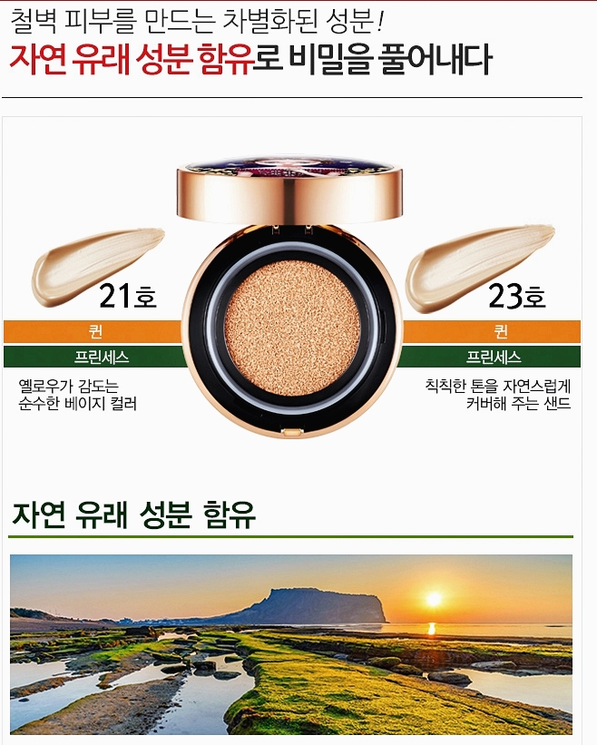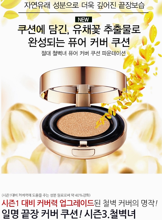 전면에 내세우고 있습니다. 쿠션에는 유채꽃 추출물로 퓨어 커버 쿠션으로 구성되어 있어요.