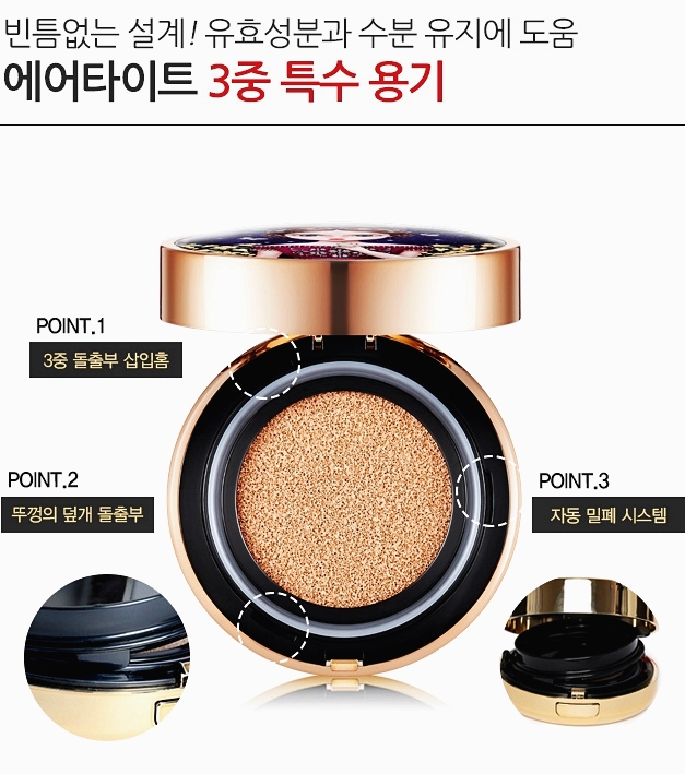 셋째로는 3중 에어타이트 용기가 수분 증발을 막아줘서 어디서나 처음처럼 촉촉하게 해준답니다.