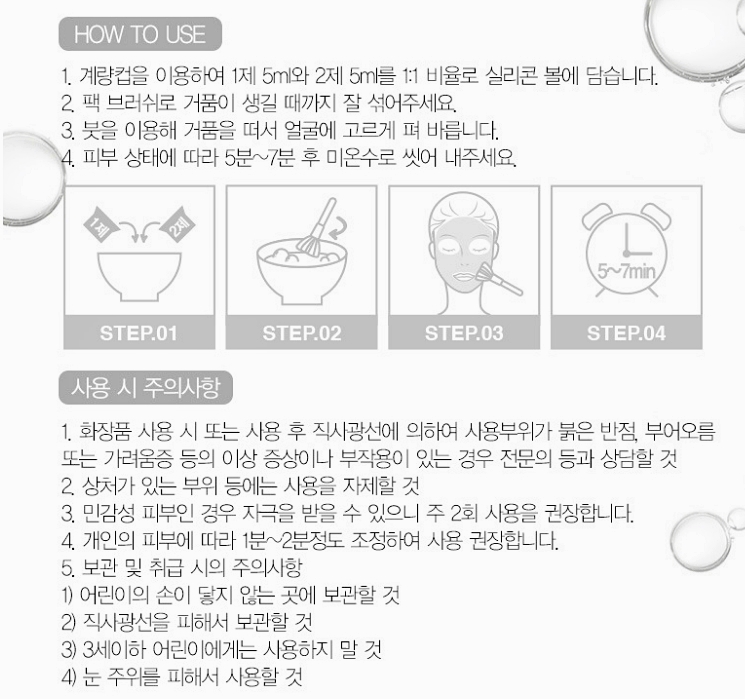 거품이 나도록 잘 저은후 얼굴에 도포하면 거품은 금방 사라지고