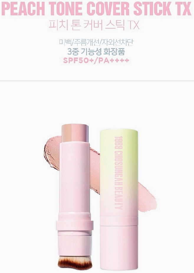 복숭아 빛 광채 피부가 필요하시다면 조성아 톤커버스틱TX면 됩니다.