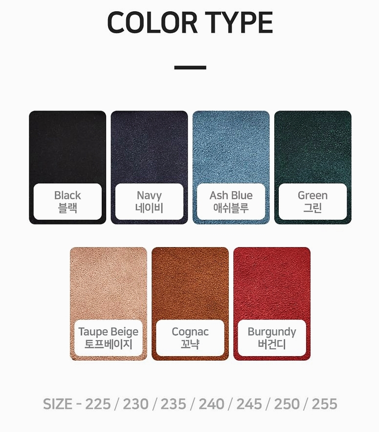 평소 235신었는데 240으로 주문하니까 잘 맞아요~ 딥그린 색상으로 주문했는데 흔하지 않으면서도
