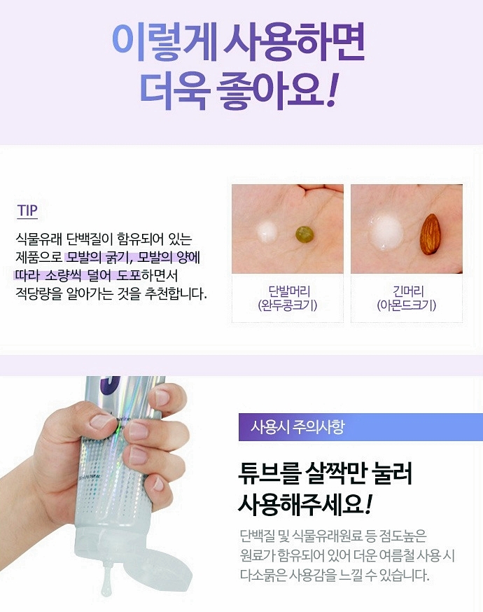 강조하고 싶은 부분은 머리 엉킴 /끊김 없어진다 대용량 트리트먼트보다 오히려 경제적이다 샤워시간 단축 !