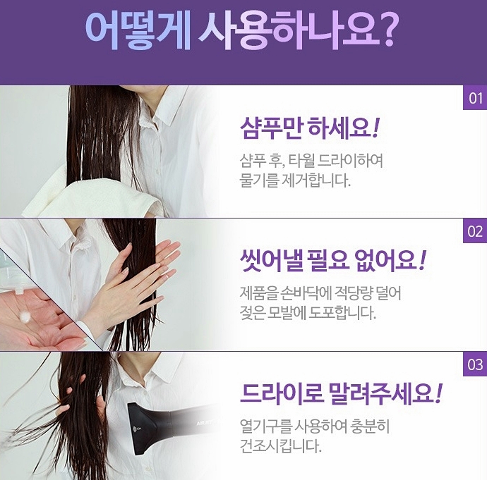머리감고 대충 물기 제거후 적당량 바르면 끝!
