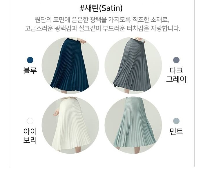 디자인, 색감, 소재, 길이감 만족해요 특히 블루색상은 은은한 광택으로 더 예뻐요