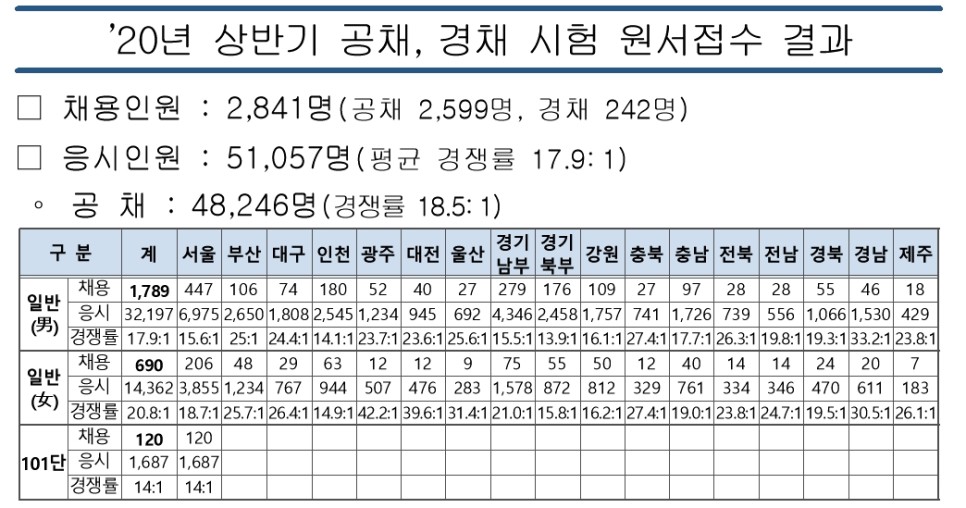 아래의 2020년 1차 경쟁률 참고하시여