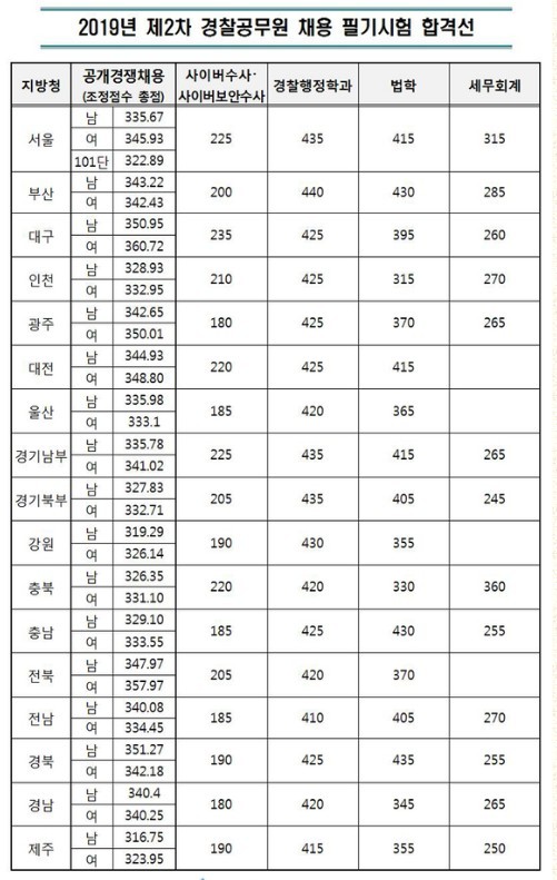 ※ 2017, 2018, 2019년 경찰채용 합격선 & 경쟁률 ※