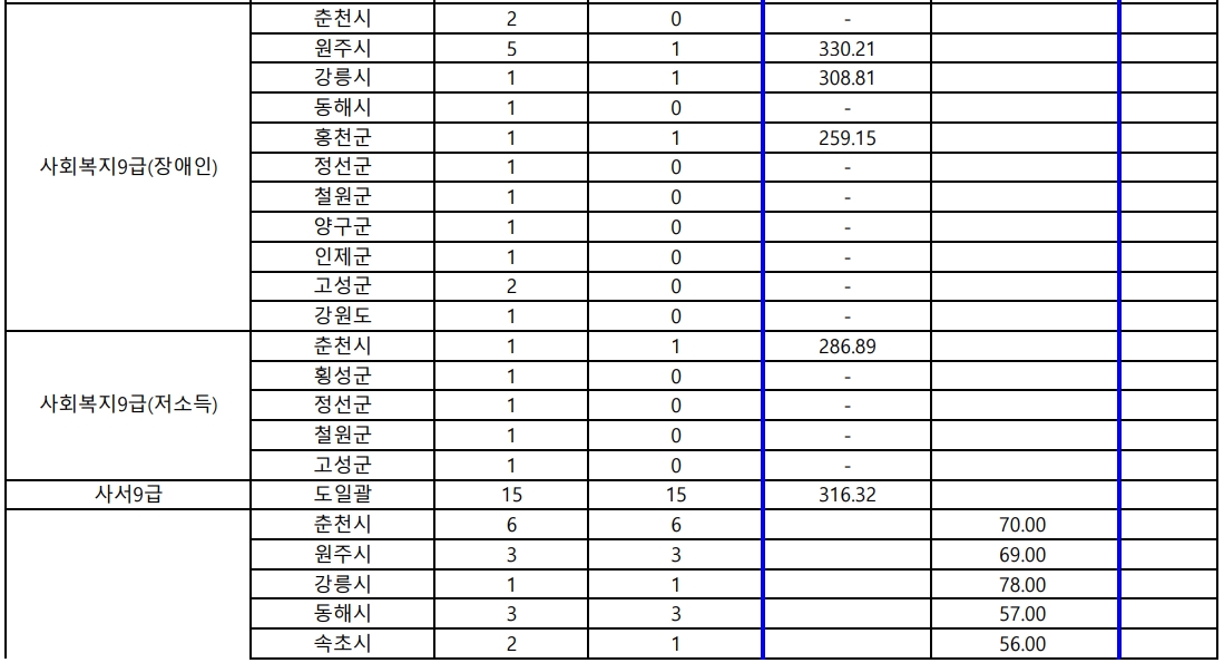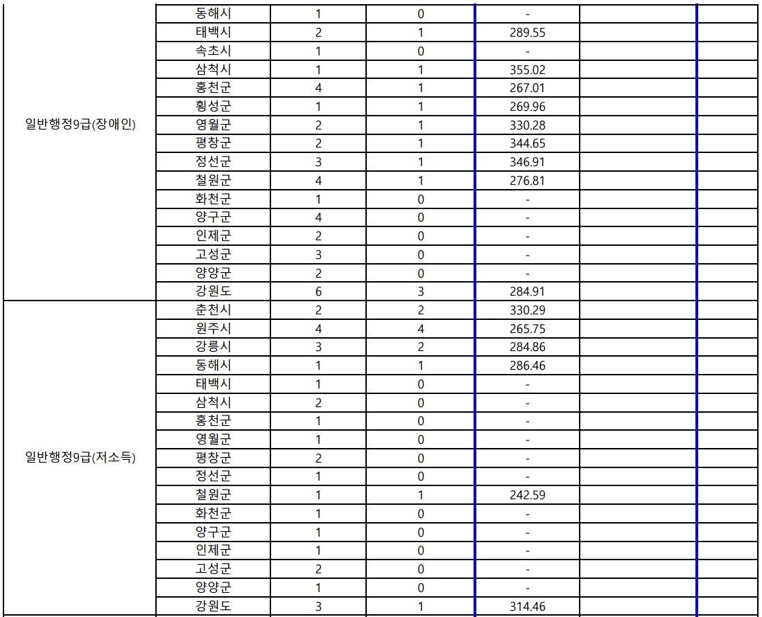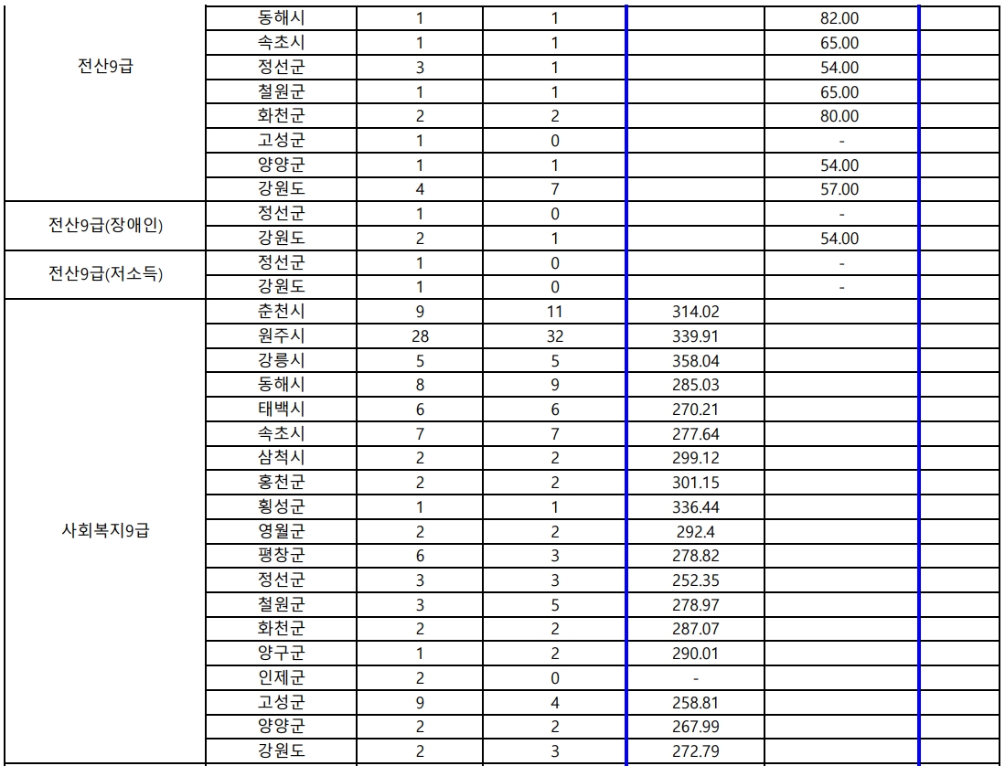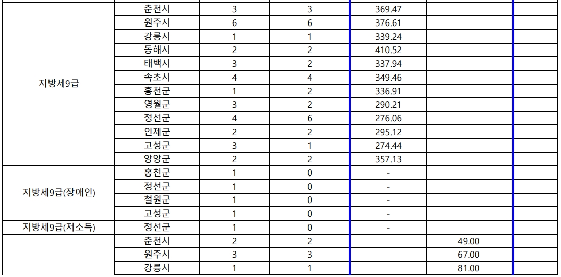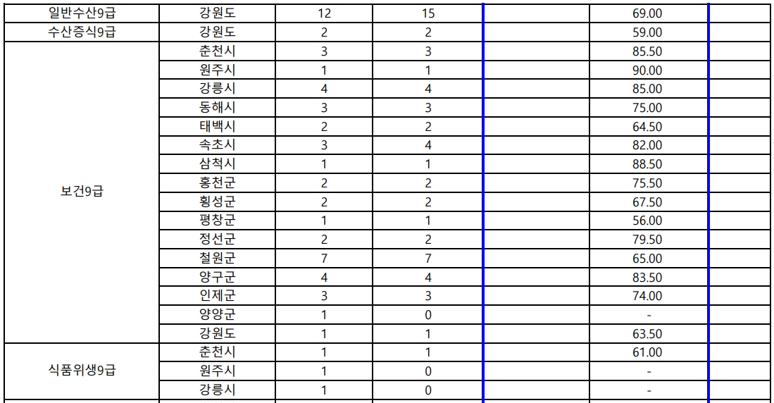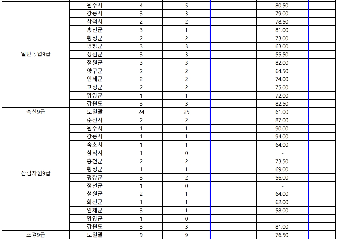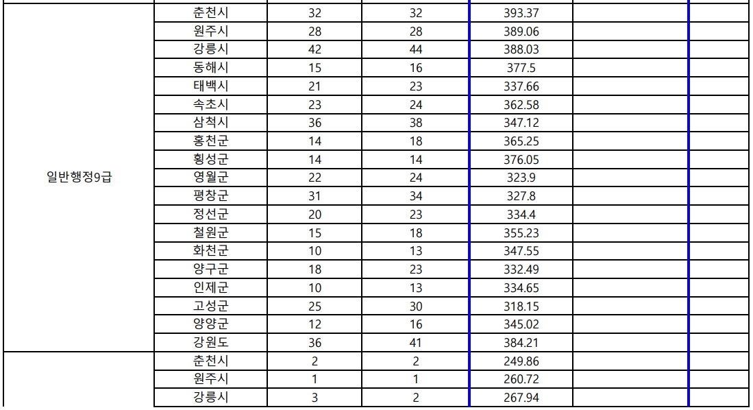 ※ 2017년 ~ 2018년 강원 9급 합격선 ※