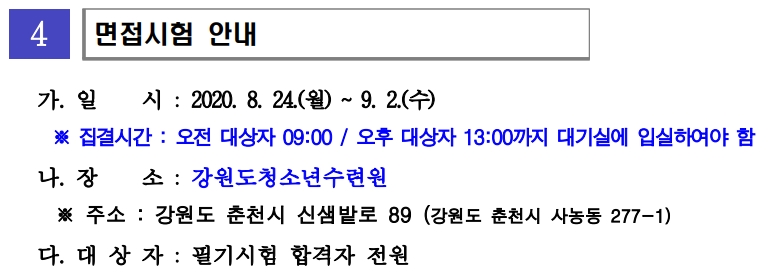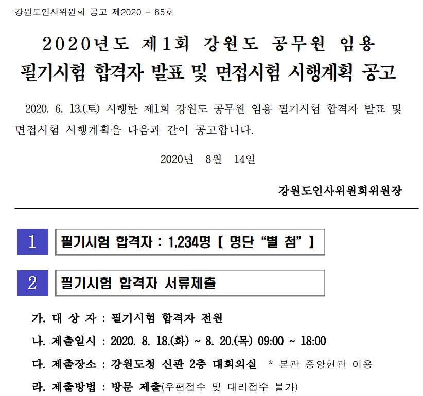 2019.07.19. 강원도 지방직 9급 필기시험 합격자 발표가 있었습니다. 필기시험 합격자 발표와 함께 면접시험 일정을 공개하였는데요. 강원도는 필기시험 합격자 894명을 대상으로 1차 �