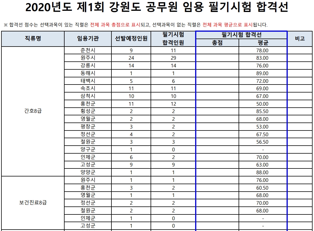 2019 강원도 9급 필기시험 합격자 발표, 합격선 알려드립니다. 면접시험일정 & 면접장소 강원도 추