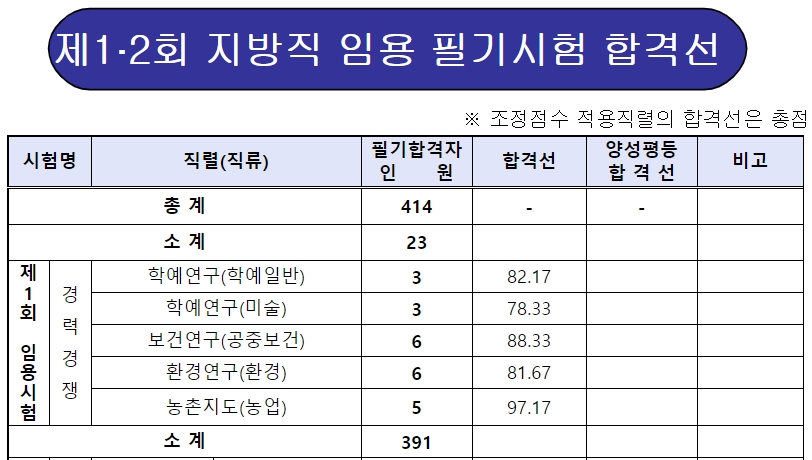 - ‘보통’ 등급을 받은 응시자는 필기시험 성적이 높은 사람부터 차례로