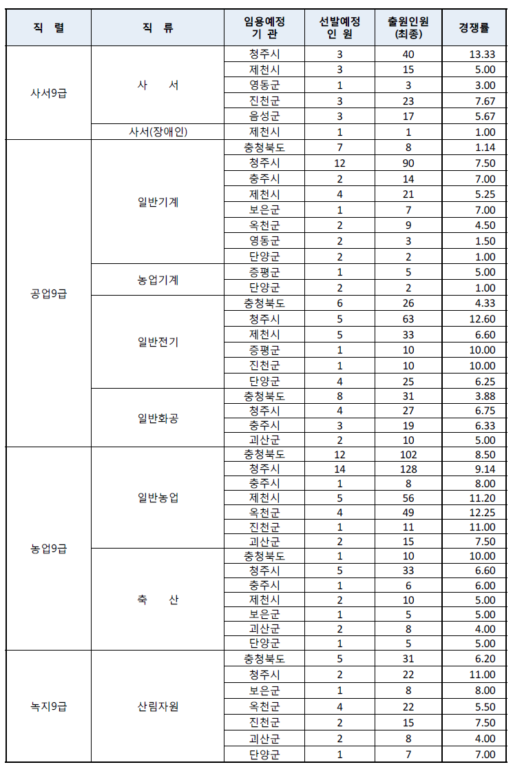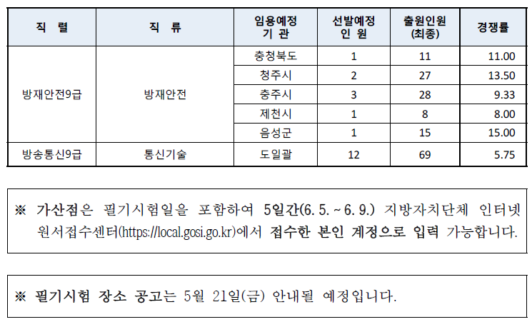 모든 자료의 출처는 충북도청 시험공고란 입니다.