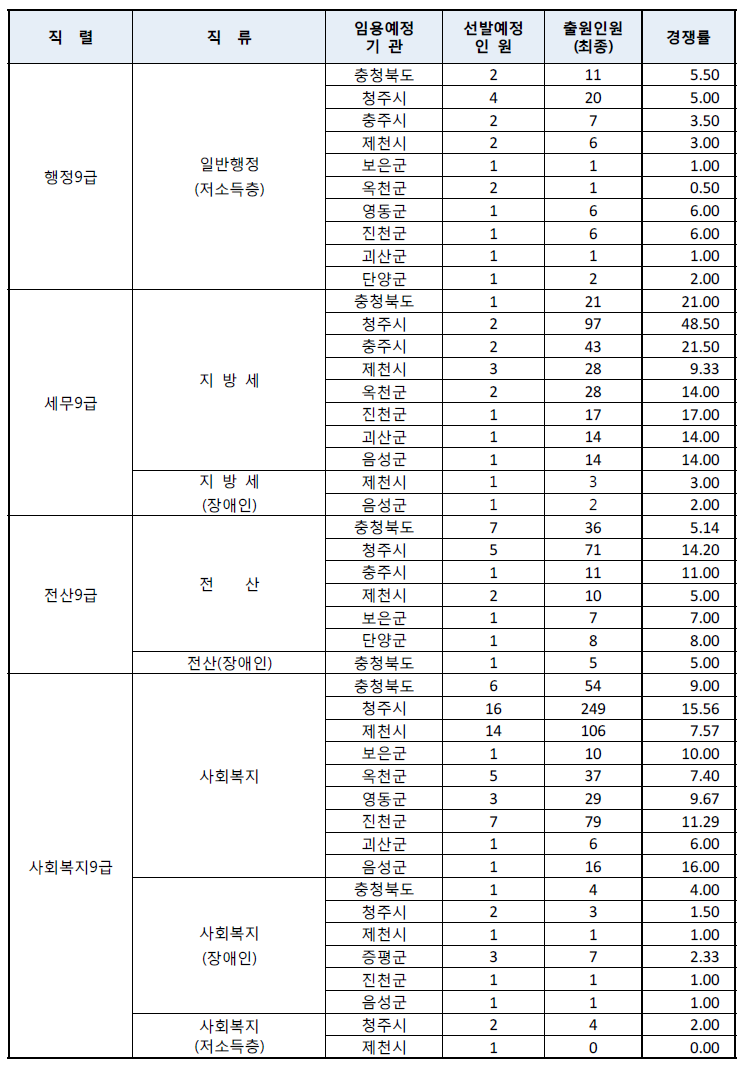 2021년 충북 9급 일반행정 경쟁률은