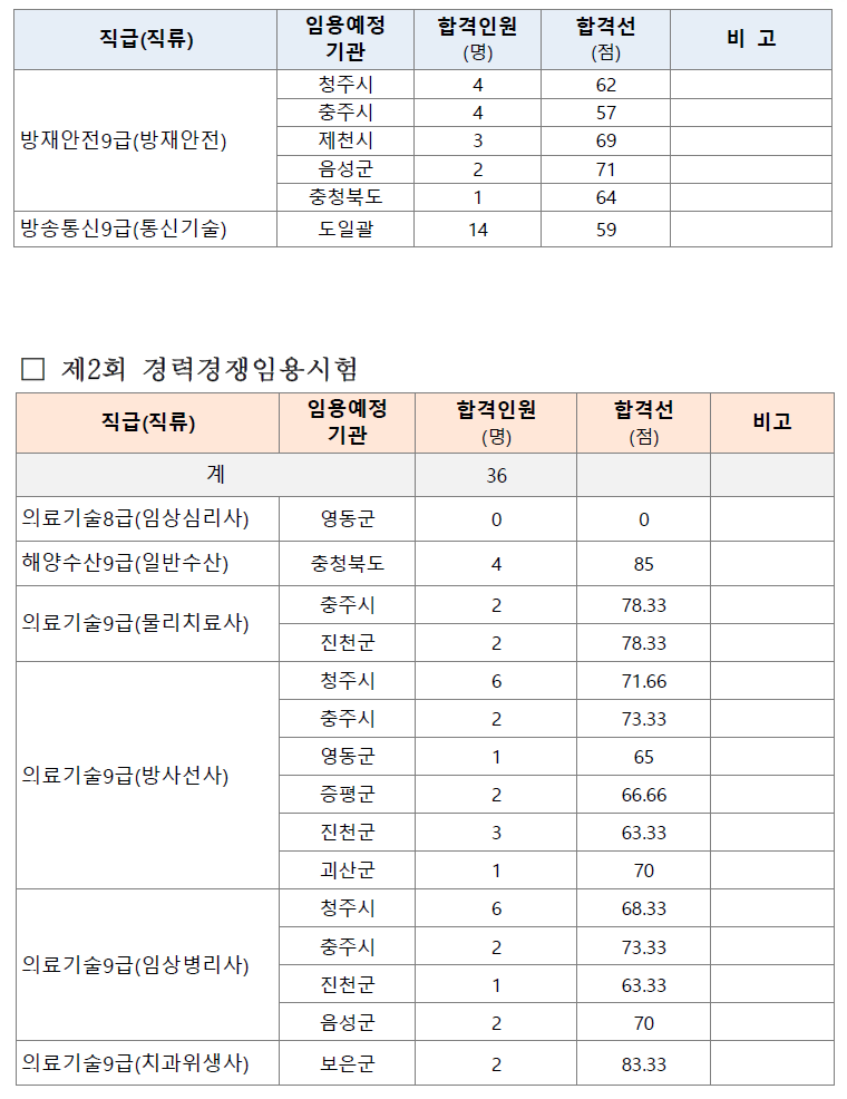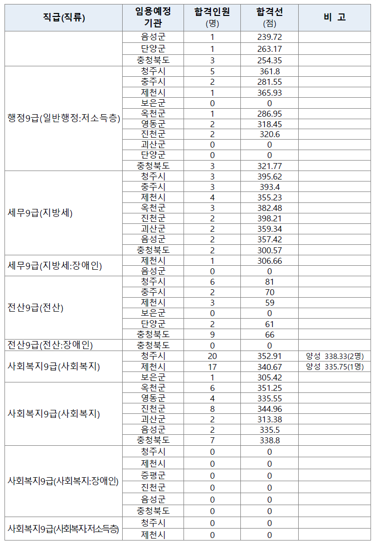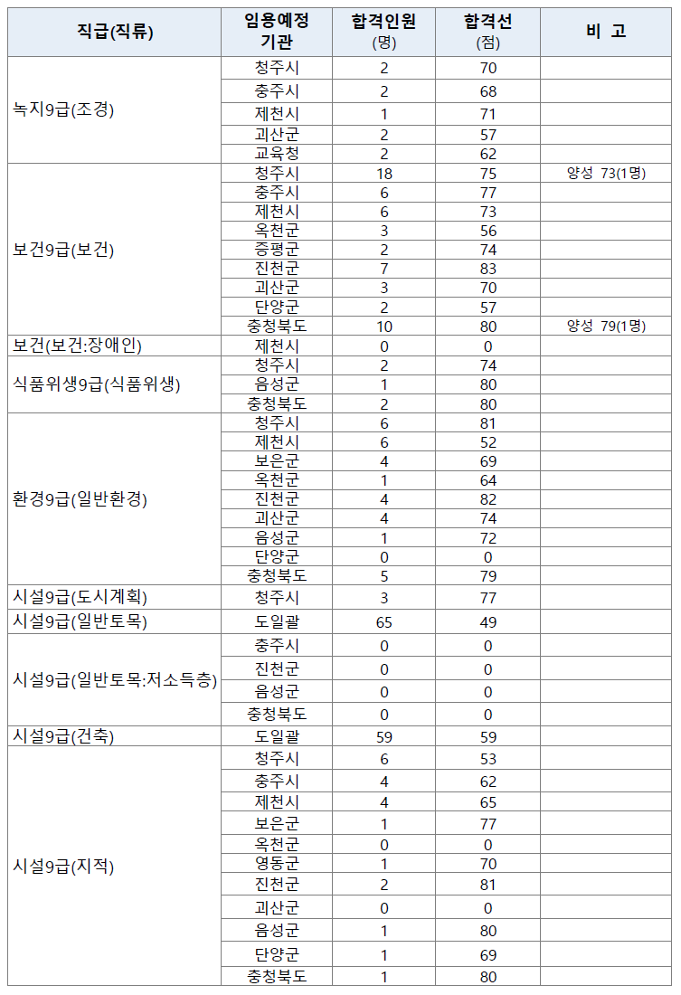 2021년 제1회 충북 지방공무원 필기시험 합격자는