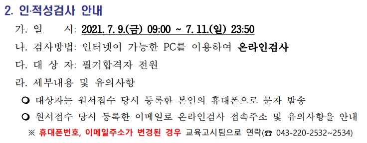 충청북도 총무과(교육고시팀)로 문의하여 주시기 바랍니다.