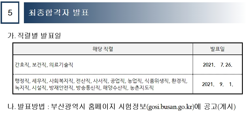 2021년 부산 지방직 최종합격자 발표는